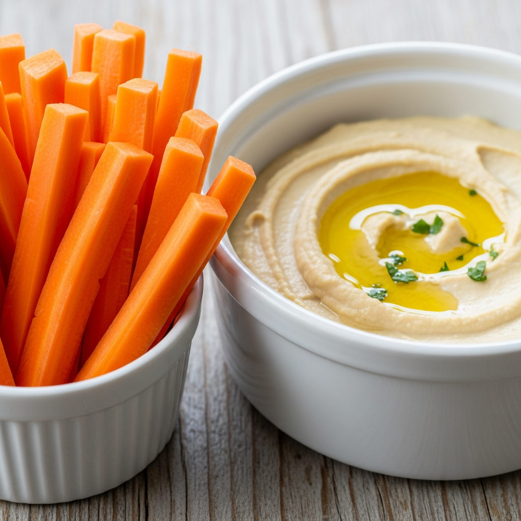 Carrots are high in beta-carotene, which the body converts to vitamin A to support the immune system. Hummus, made from chickpeas and olive oil, provides healthy fats and fiber. This combination is a classic affordable snack that provides a satisfying crunch and various phytonutrients.