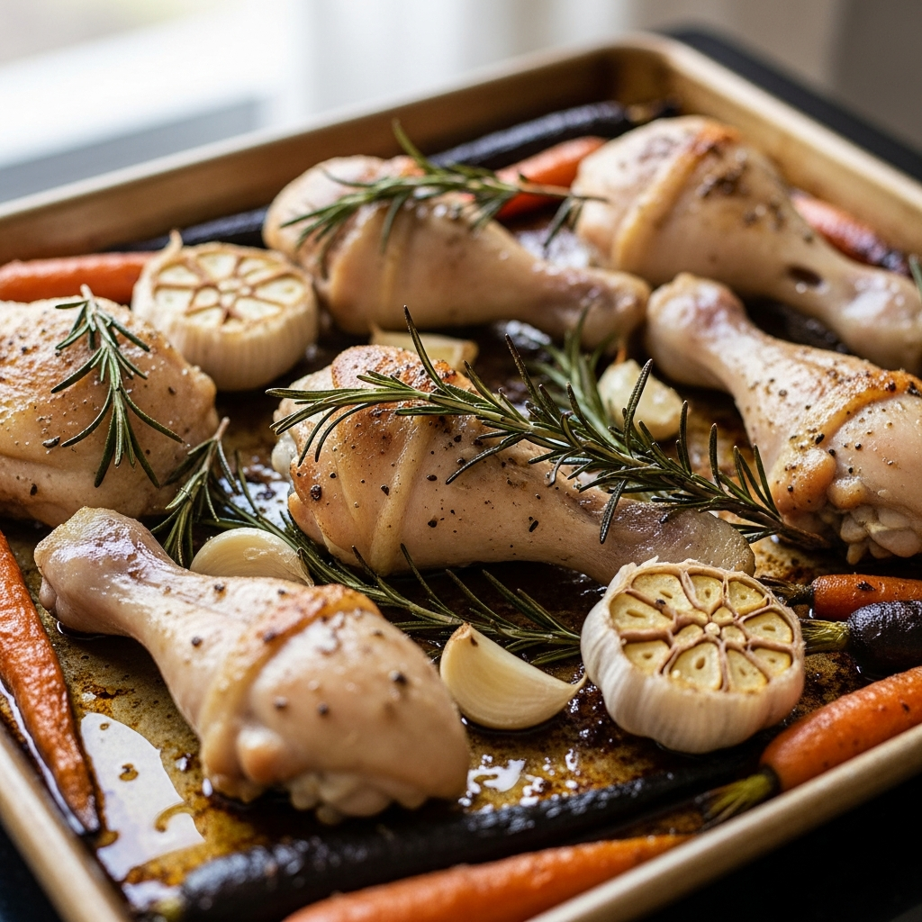 Sheet pan meals are the epitome of clean eating convenience. This recipe uses garlic, which has sulfur compounds that support the immune system, and rosemary, known for its antioxidant properties. Tossed with carrots and onions, this is a balanced one-pan meal.