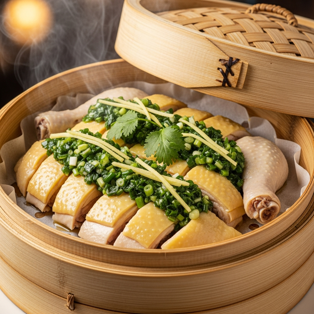 21. Ginger Scallion Steamed Chicken