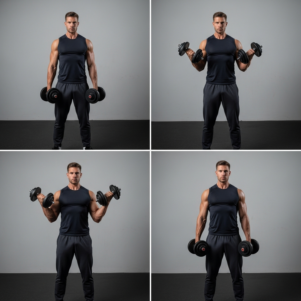 | Standing Dumbbell Curl | 3 | 8-12 | Overall Biceps Mass, Form Reinforcement |