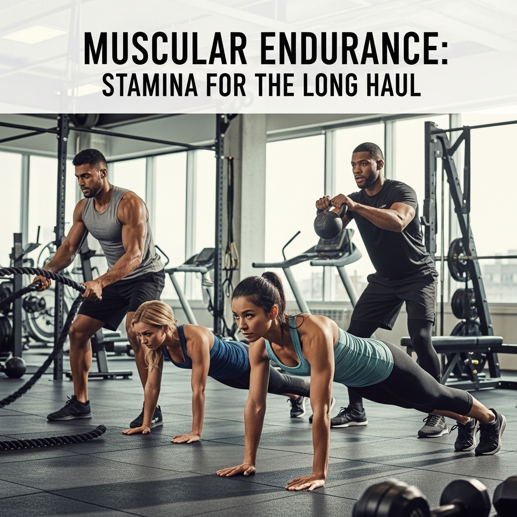 Muscular endurance is the ability of your muscles to perform repeated contractions or to hold a contraction for an extended period without getting tired. Think about carrying heavy groceries up several flights of stairs, holding a plank for a minute, or doing many repetitions of a bodyweight exercise.