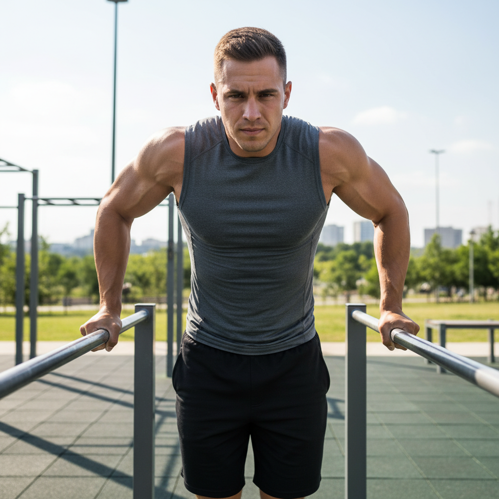 Dips are a fantastic bodyweight exercise for building formidable triceps, chest, and shoulder strength. They can be done on parallel bars or a bench.