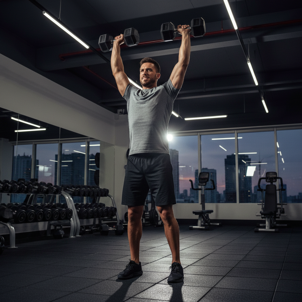 The dumbbell thruster is a dynamic, full-body exercise that combines a front squat with an overhead press, building endurance, strength, and power.
