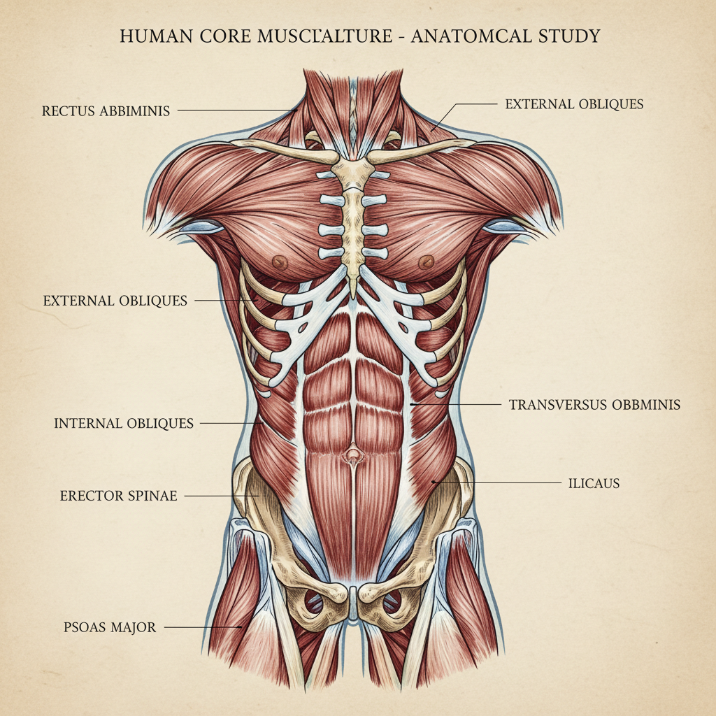 • Pelvic Floor Musclesย Support the pelvic organs and contribute to core stability.