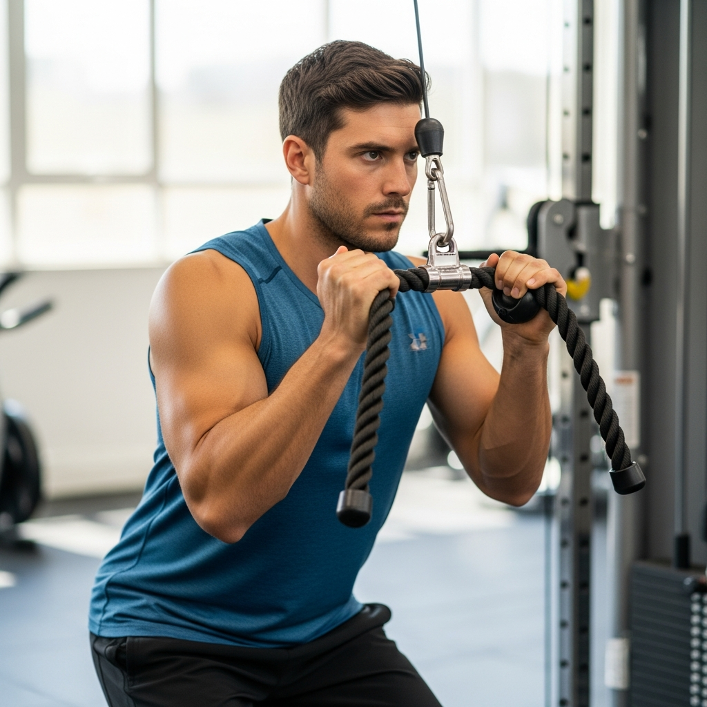 * Choose Your Equipment: The most common setup is a cable machine with a rope attachment. If you’re at home, a resistance band anchored to a sturdy object (like a door frame or a pole) works perfectly.