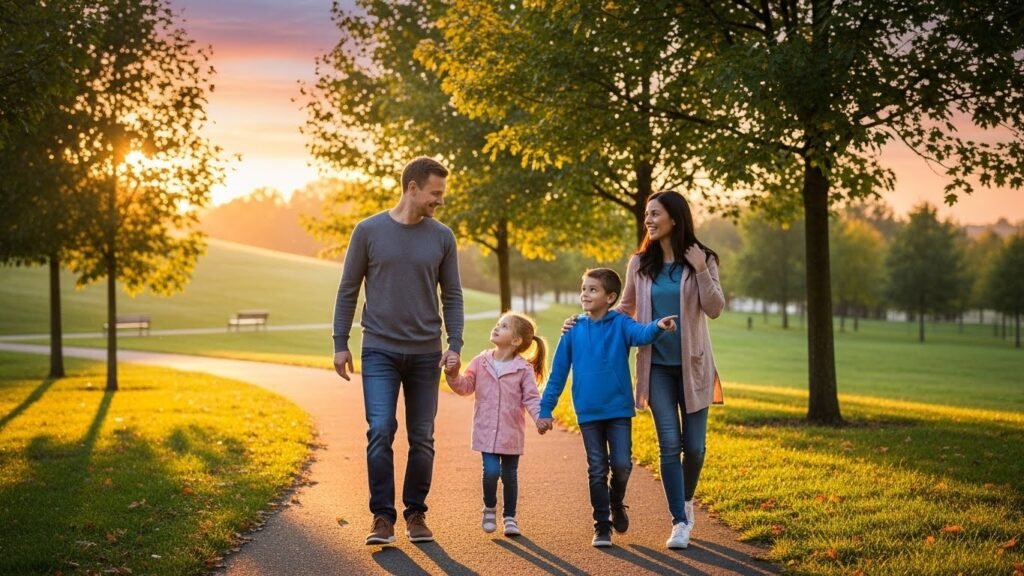 Try cycling, hiking, playground time, or a simple picnic with active games.