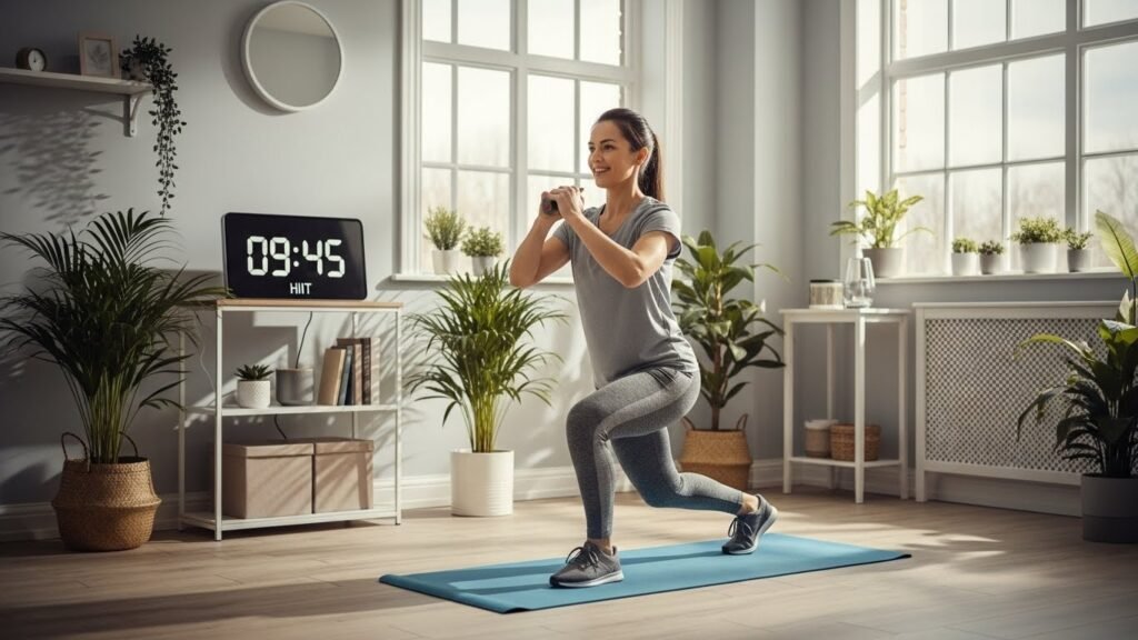 Mix squats, lunges, wall push-ups, planks, and light cardio.