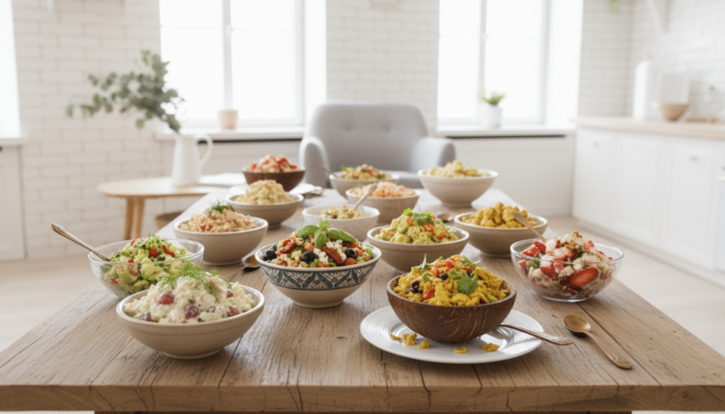 - No mayo: Uses Greek yogurt or avocado for creamy texture.