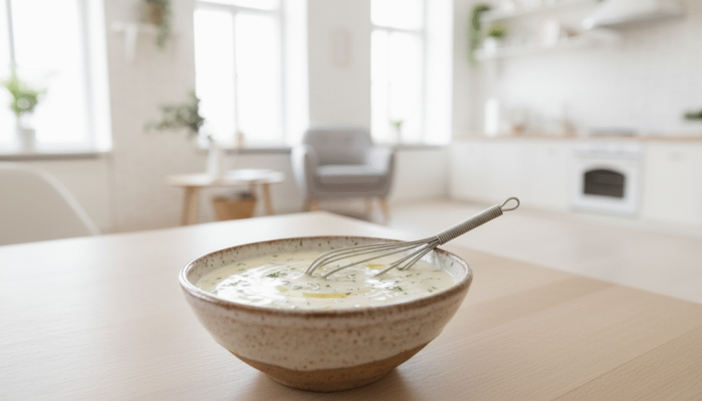 Taste and adjust. The dressing should be creamy, tangy, and lightly seasoned โ the perfect base for your chicken and veggies.