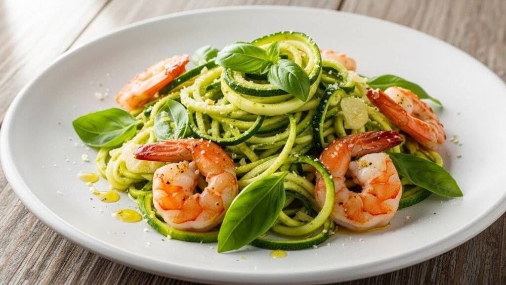7. Zucchini Noodles With Pesto & Grilled Shrimp