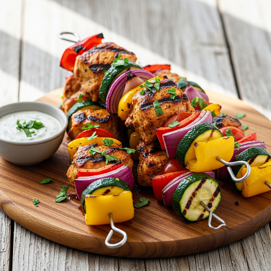 Skewer cubes of chicken breast with bell peppers and red onions. Marinate them in olive oil, lemon, and oregano before grilling. The result is a high-protein meal that is fun to eat and packed with the bright flavors of the Mediterranean.