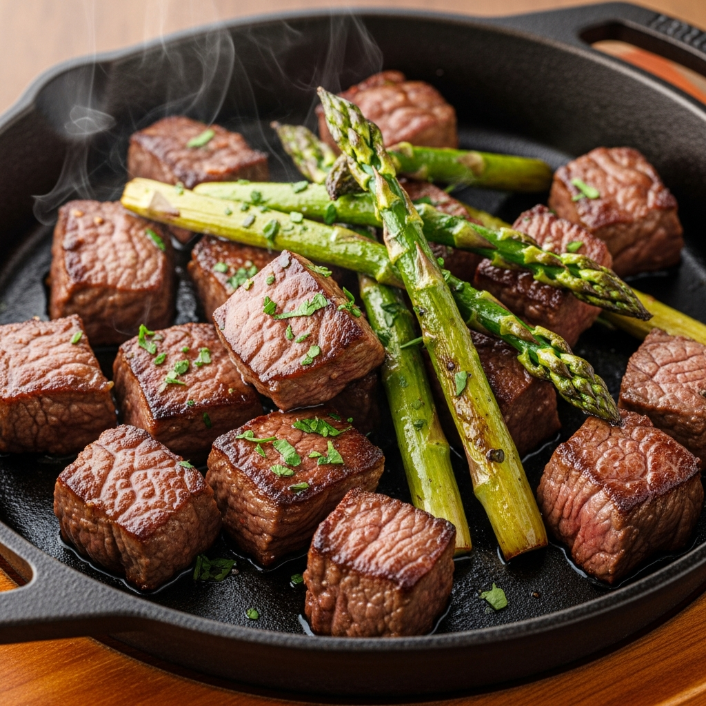 Sirloin or ribeye steak cut into bite-sized pieces can be quickly sautรฉed at high heat to lock in flavor. Adding asparagus spears to the same pan allows the vegetables to soak up the juices. This one-pan meal is perfect for those who want a hearty, iron-rich dinner without the preparation complexity.