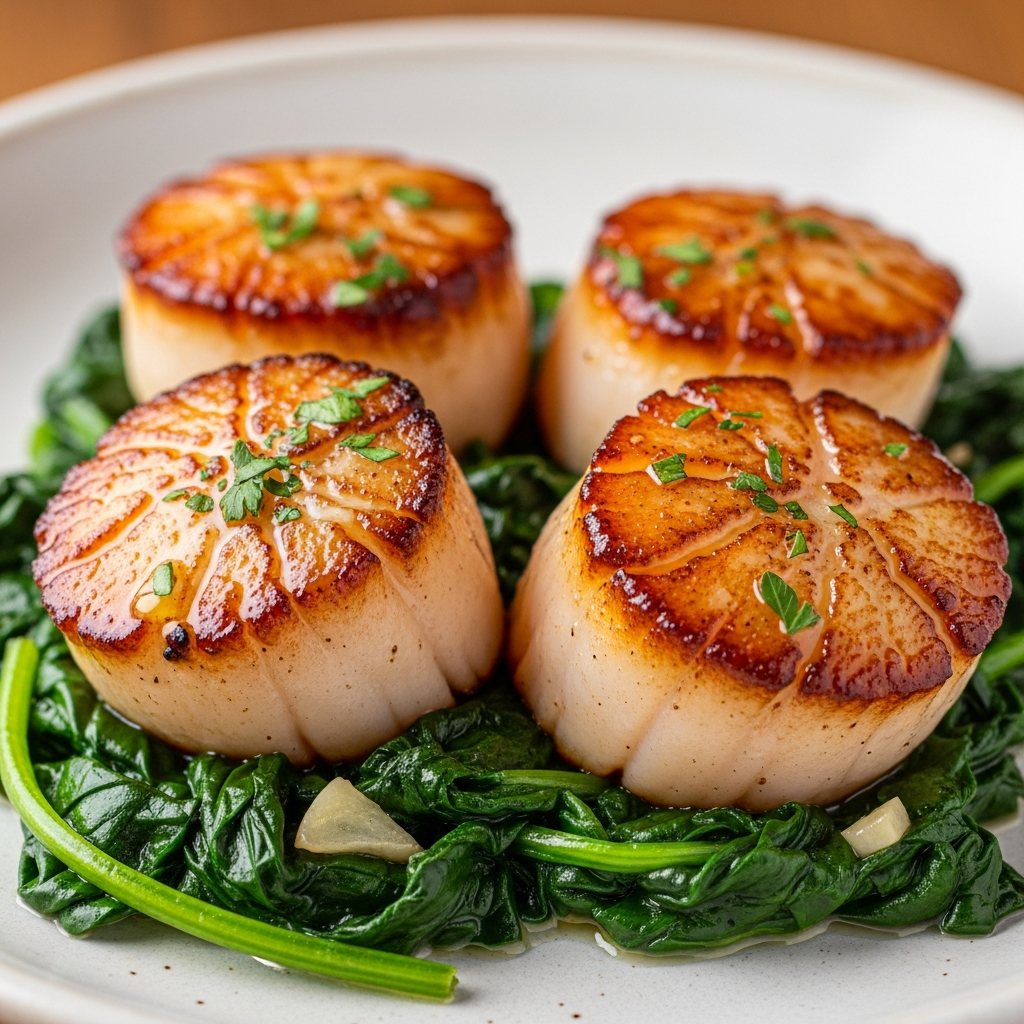 Scallops are a gourmet protein choice that is surprisingly easy to cook at home. Sear them in a hot pan for two minutes per side until golden. Serving them over a bed of garlic-sautรฉed spinach creates a high-protein, low-calorie dinner that feels like a restaurant meal.