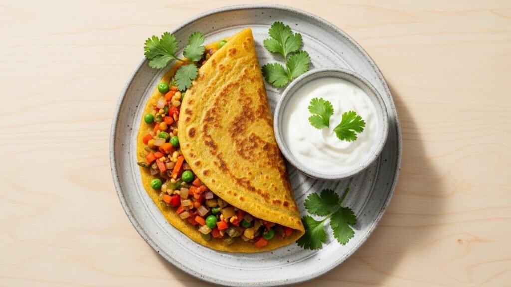 Whisk 2โ3 eggs and cook with chopped veggies like spinach, capsicum, onions, or tomatoes.
