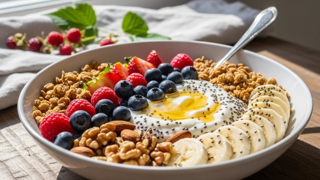 This combo gives protein, fiber, and healthy fats for a balanced breakfast.