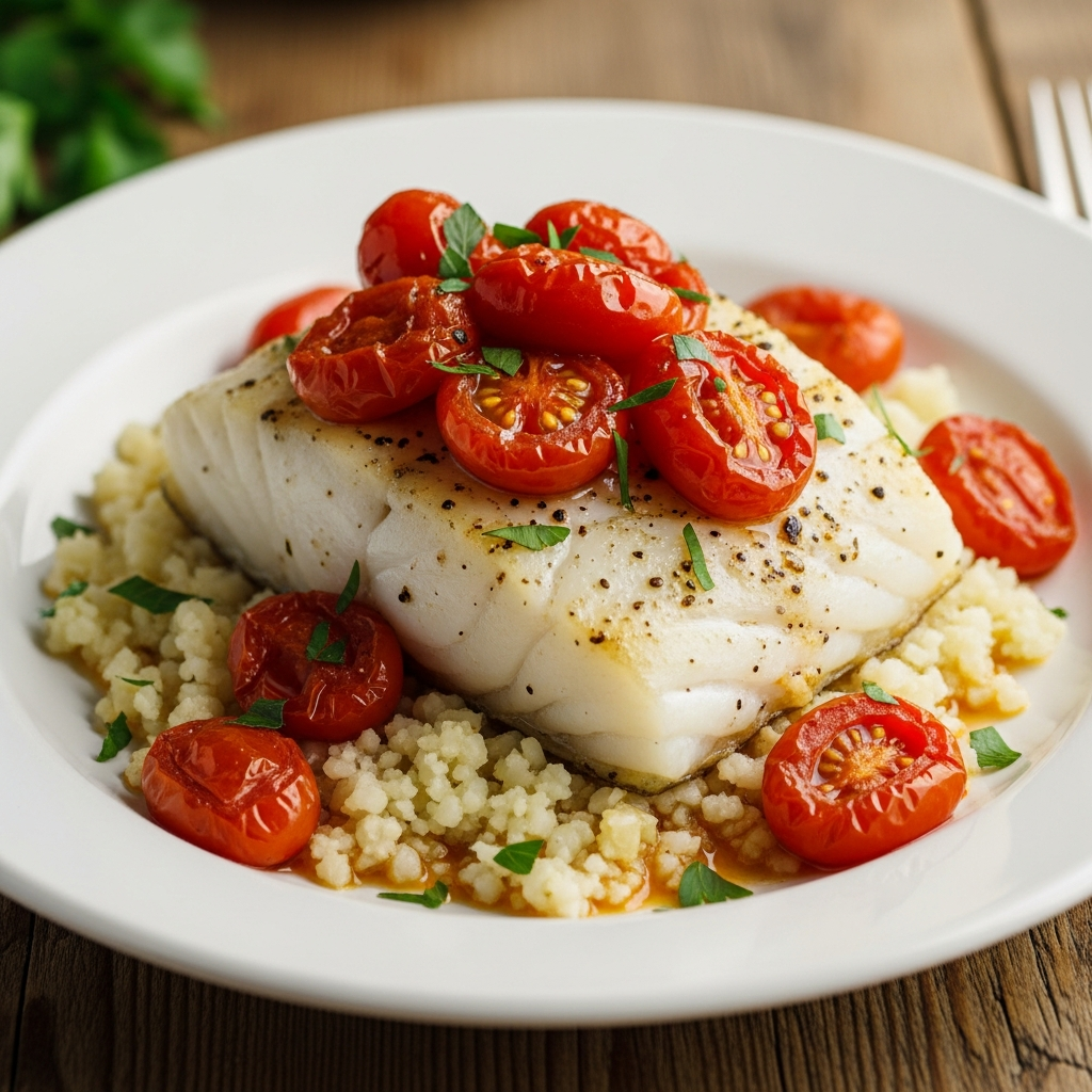 Cod is a very lean white fish that provides high-quality protein without much fat. Bake the cod fillets with a handful of cherry tomatoes and a drizzle of balsamic glaze. The tomatoes burst and create a natural sauce that keeps the fish moist. Serve with a side of roasted cauliflower.
