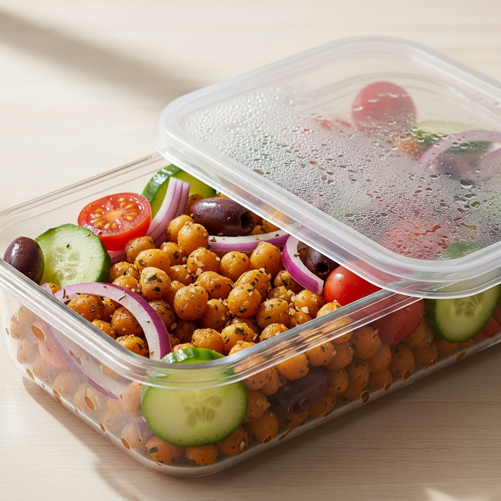 Roasting chickpeas until they are crunchy makes them a great snack or salad topper. Season them with smoked paprika and garlic powder. Pair these with roasted red peppers and zucchini for a light, high-fiber, and high-protein vegetarian meal prep option that remains fresh for several days.