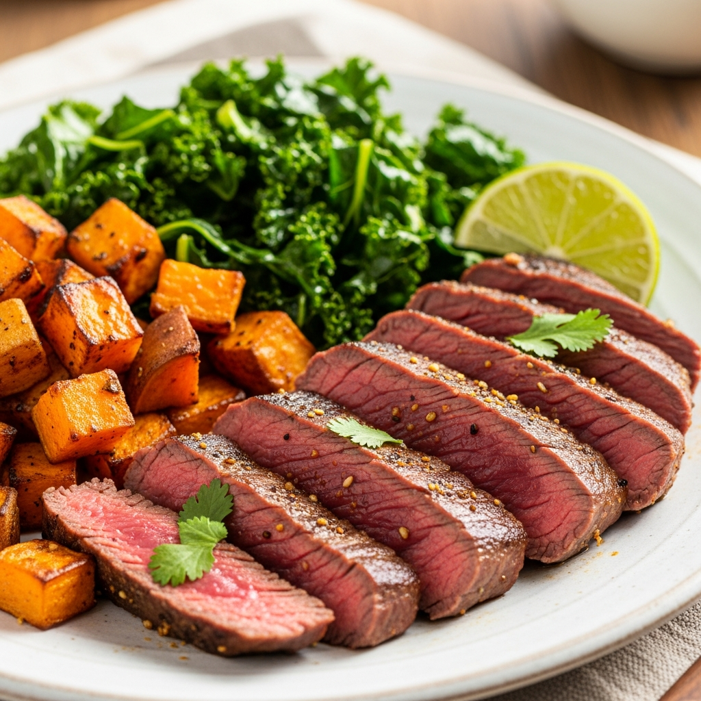 Marinate flank steak in lime juice and chili flakes before grilling to a medium-rare finish. Slice the steak against the grain for maximum tenderness. Pair the steak with roasted sweet potatoes and sautรฉed kale. This combination offers a perfect balance of protein, healthy fats, and complex carbohydrates.