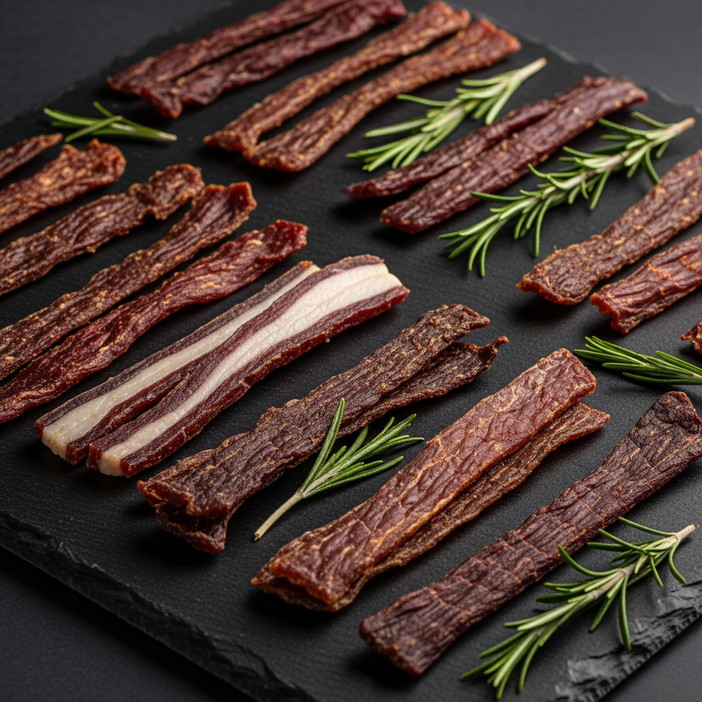 Grass-fed beef jerky is a portable protein source that contains higher levels of omega-3s and conjugated linoleic acid compared to grain-fed versions. It provides the iron necessary for thyroid function and energy metabolism. Ensuring it is free of nitrates and excess sugar prevents the endocrine disruption associated with food additives.