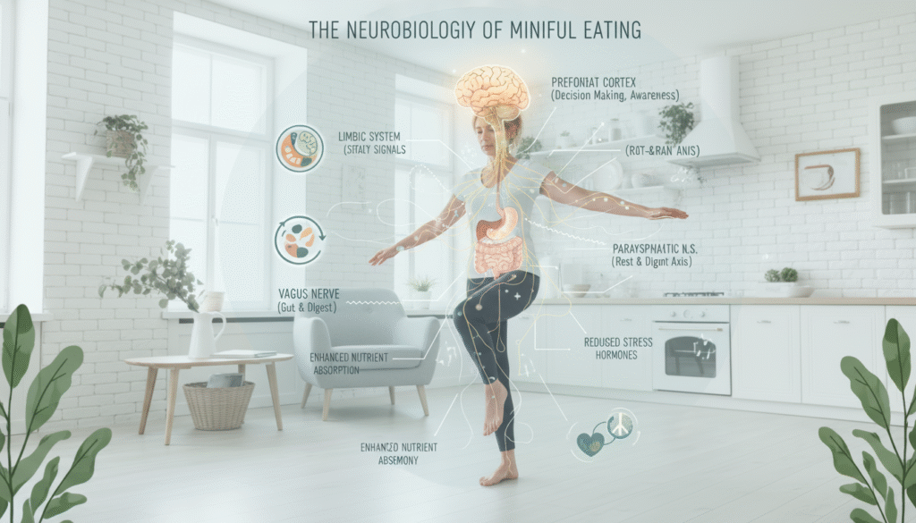 When you slow down and eat with awareness, your parasympathetic nervous system (the โrest and digestโ system) activates. This helps you digest food more efficiently and signals your brain when youโre full.