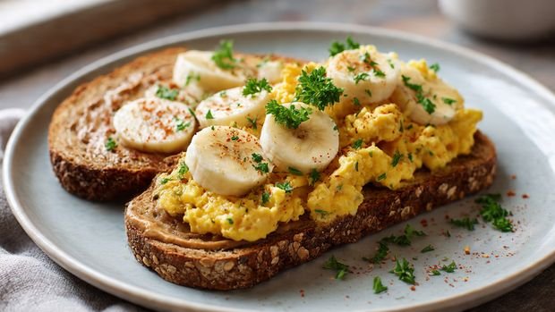 Simple doesnโ€™t mean boring. A slice of whole-grain toast topped with peanut or almond butter and banana slices is a quick, balanced breakfast with protein, fiber, and healthy fats.