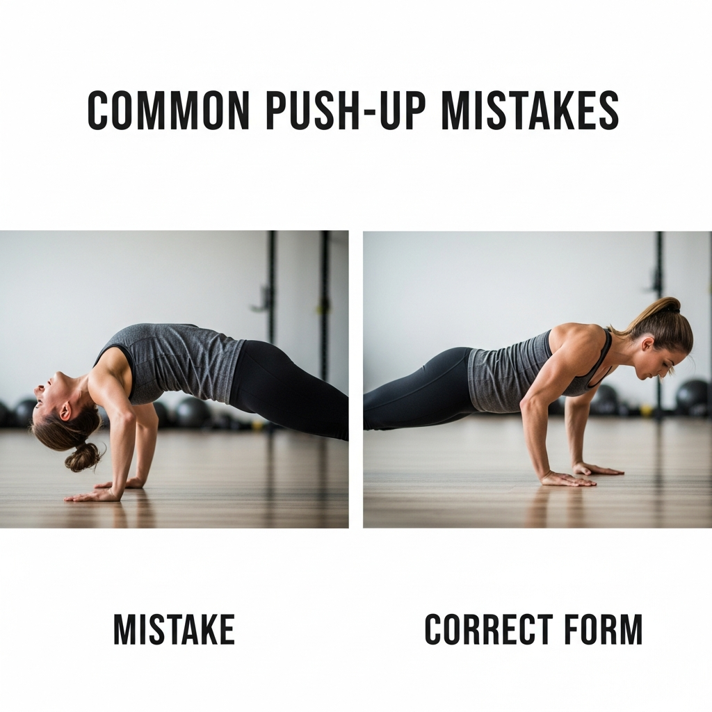 * Fix: Re-engage your core and glutes to pull your hips down in line with your shoulders and heels. Focus on maintaining that straight body line throughout the entire movement.