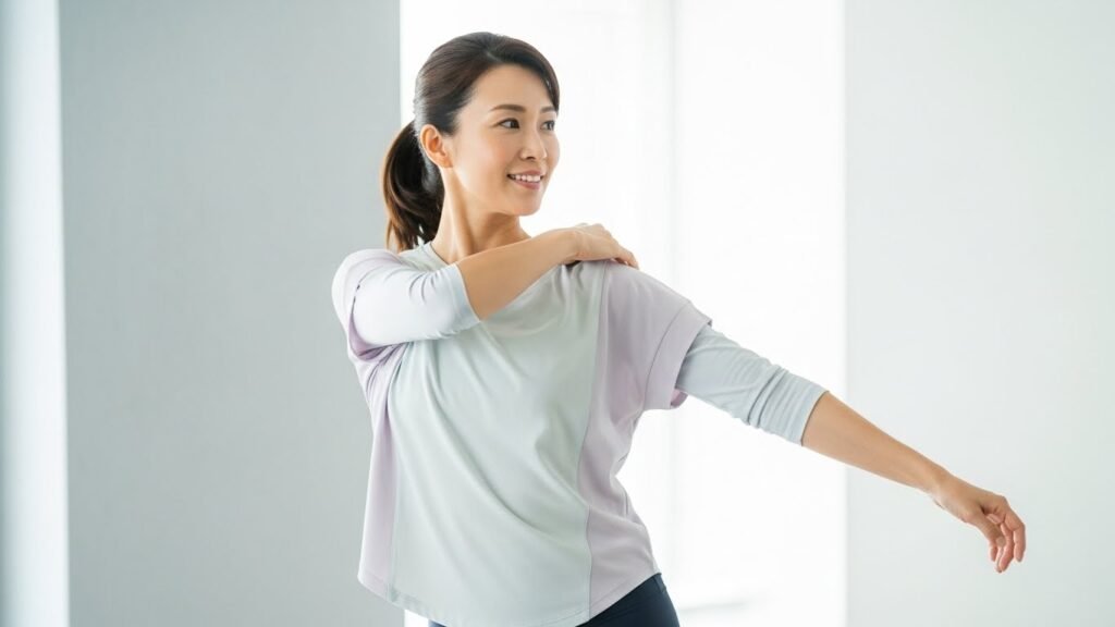 Try hamstring stretches, shoulder stretches, and slow breathing.