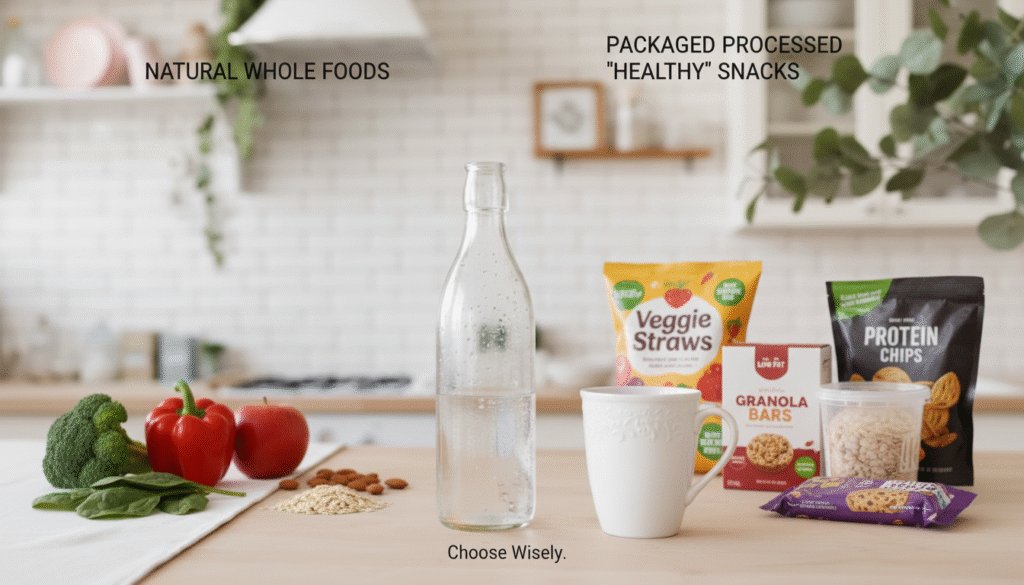 Many packaged foods labeled โ€œhealthy,โ€ โ€œlow-fat,โ€ or โ€œsugar-freeโ€ are actually loaded with additives or hidden sugars.