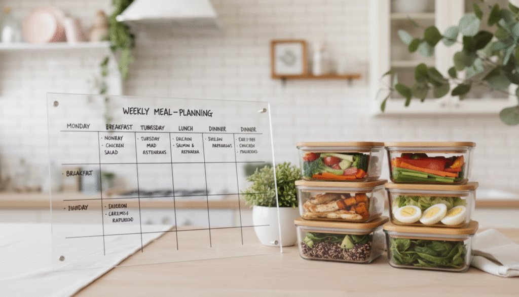 Even spending 15โ€“20 minutes thinking about what youโ€™ll eat during the week can save hours of decision fatigue later.