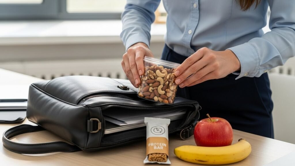 Busy schedules often lead to dehydration, which can be mistaken for hunger. Keeping a water bottle with you helps prevent unnecessary snacking.