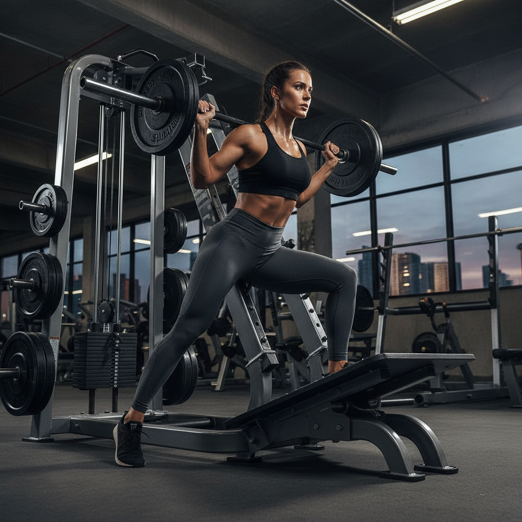 • Day 1 – Lower Body Focus (Strength): Barbell Back Squats (3-4 sets of 6-8 reps), Bulgarian Split Squats (3 sets of 8-10 reps per leg), Glute-Focused Hack Squats (3 sets of 10-12 reps).