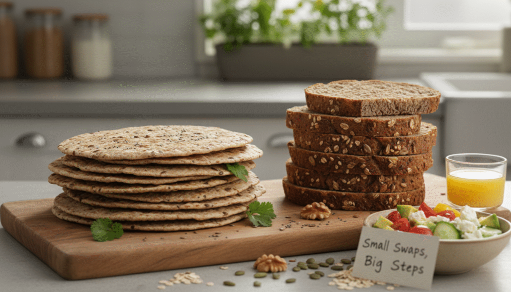 • Week 3: Replace refined carbs (white bread, pasta) with whole grains.