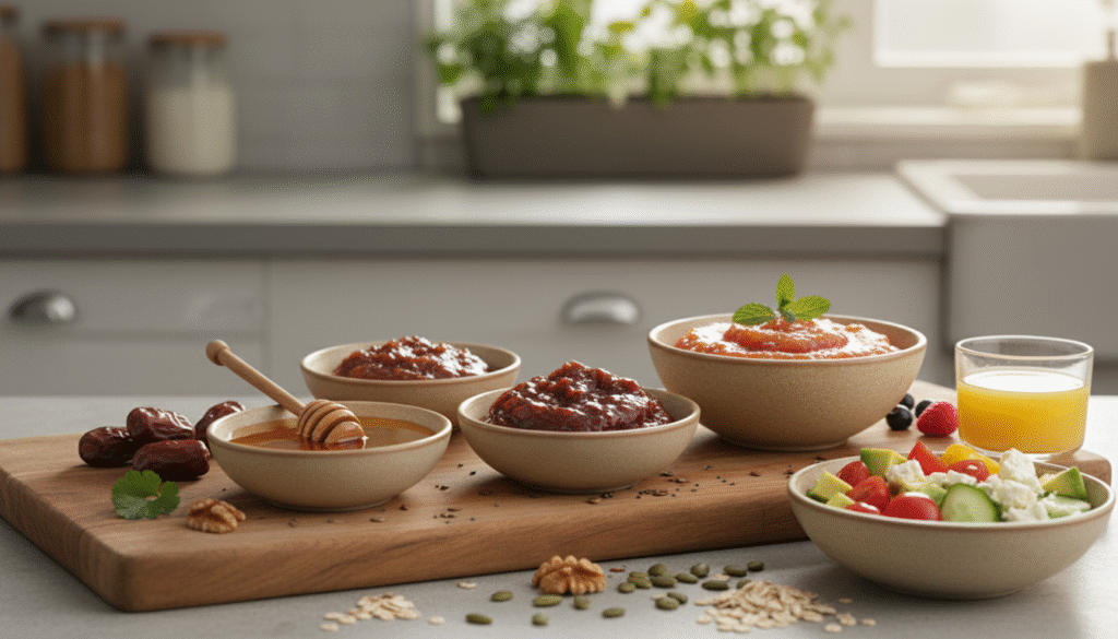 • Raw honey: Natural and full of antioxidants (use sparingly).