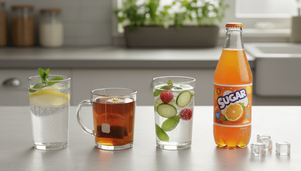 If you love soda, try mixing sparkling water with a small splash of 100% fruit juice โ€” youโ€™ll still get flavor without the sugar overload.