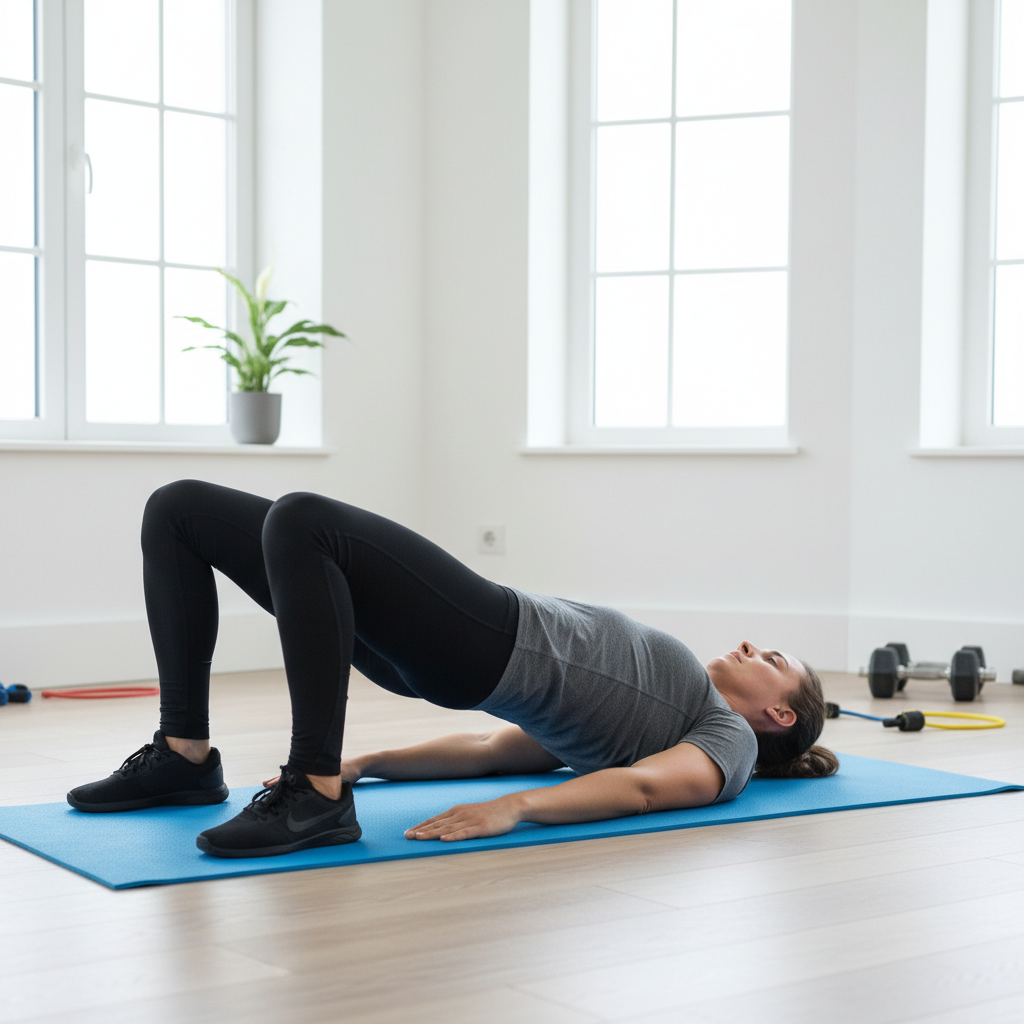 Variations: Single-leg glute bridge (increases challenge), adding a resistance band above the knees (enhances glute activation).