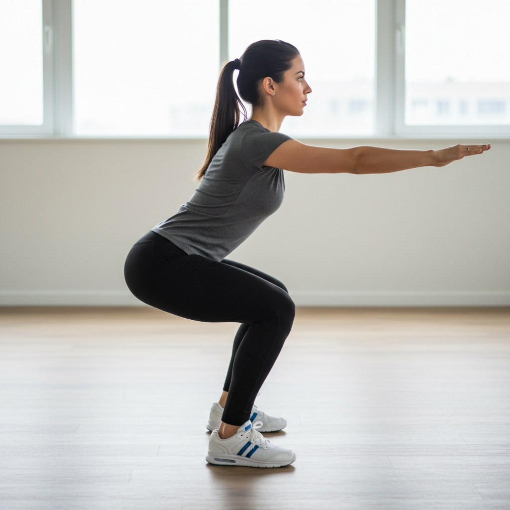 How to do it: Stand with feet shoulder-width apart, toes slightly out. Keeping your chest up and back straight, push your hips back as if sitting in a chair. Lower until your thighs are parallel to the floor (or as low as comfortable and pain-free), ensuring your knees track over your toes, not collapsing inward. Push through your heels to return to the start, squeezing your glutes at the top.