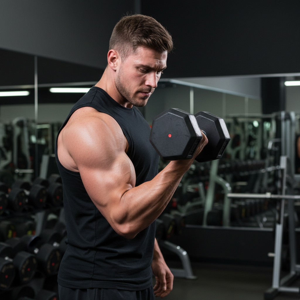 The classic bicep curl is fundamental for building mass and definition in the front of your upper arm.