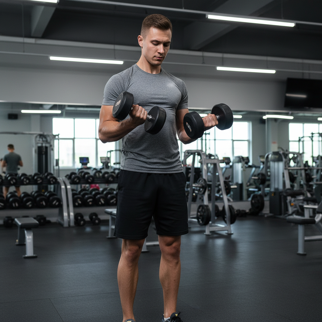 How to Perform:Stand with feet shoulder-width apart, holding a dumbbell in each hand with palms facing each other (a “hammer” grip).Curl the weights up towards your shoulders, keeping your palms facing each other throughout the movement.Slowly lower the dumbbells back to the starting position.