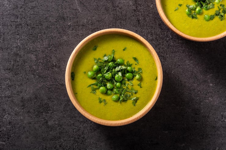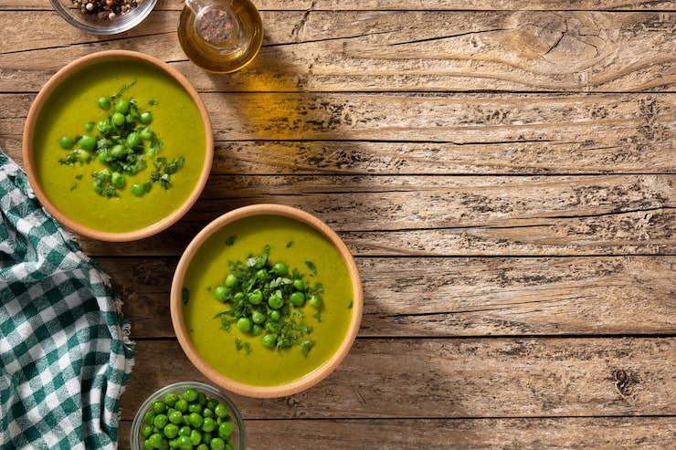 Kale, spinach, and peas blended with lemon juice make a refreshing, cleansing soup that supports digestion.